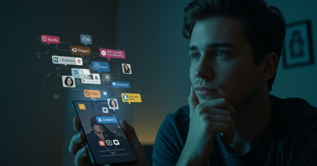 It highlights the growing demand for authenticity mixed with the pressures and risks of constant visibility in the digital world.